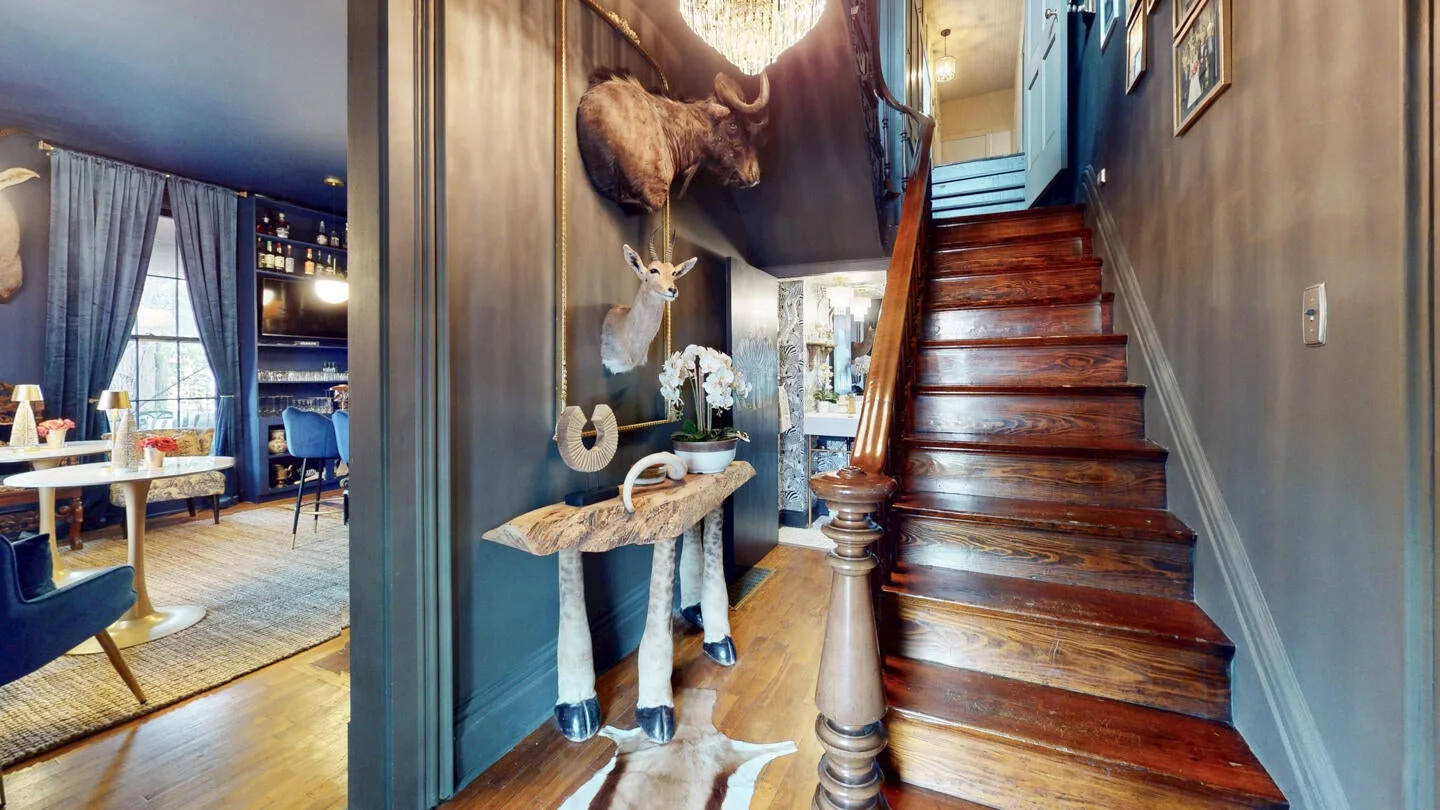 This 1892 Queen Anne-style Victorian home has been fully restored to its original elegance with modern amenities! Known as the ''Herndon House,'' the grandeur starts in the commanding foyer with the mahogany curved staircase & 2 adjacent parlor living rooms, including a formal fireplace mantel with original embossed tile from Innes and Co. in the ''music'' pattern (c. 1895). See the incredible collection of brass and iron hardware throughout, including many pieces of P. F. Corbin's Ceylon pattern. Many original details intact including transom lifters, balustrade, hardwood flooring, woodworking, trim and moldings! Modern amenities include a new large kitchen with granite and all stainless appliances. First floor full bath and laundry!